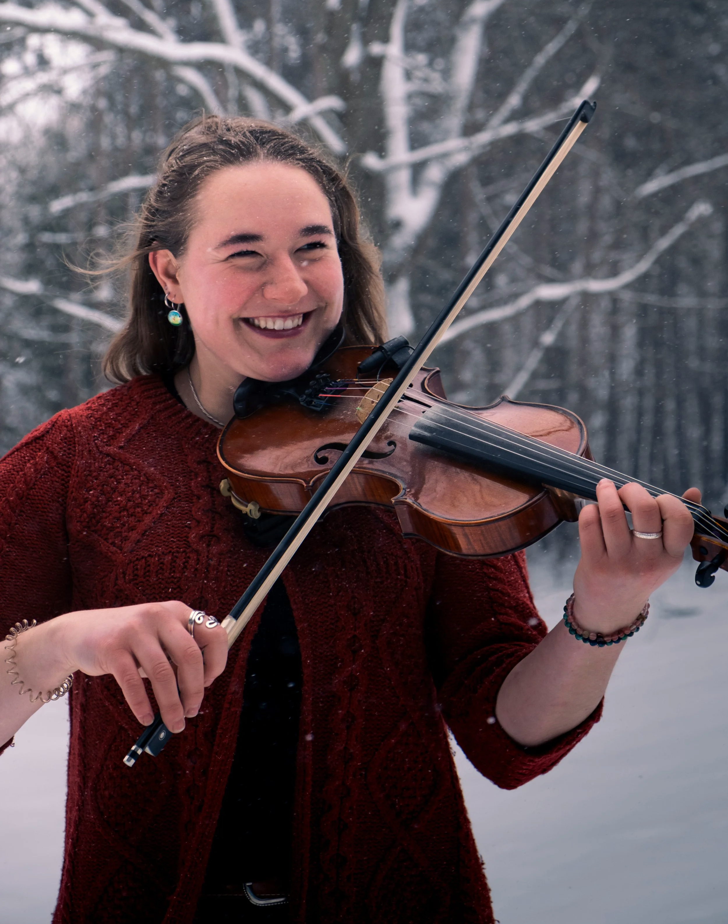 She has been active as a fiddle player since 2019 drawing inspiration from her grandfather, who played traditional French-Canadian tunes on harmonica, among other musical family members.